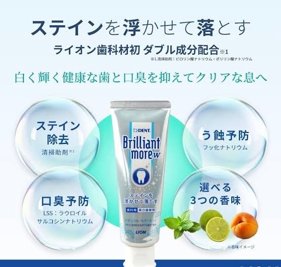 美しい笑顔を手に入れるために、ブリリアントモア歯磨き粉【ホワイトニング】が登場しました。独自のホワイトニング成分が、歯の表面の汚れをしっかりと取り除き、輝く白い歯を実現します。優れた泡立ちで、口の中全体をしっかりと洗浄し、清々しい後味が長続きします。毎日の歯磨きが楽しくなる、華やかなパッケージデザインも魅力です。